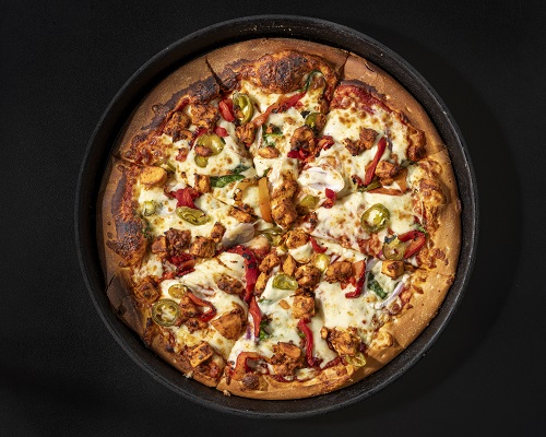 mushroom, onion, capsicum, sweet corn, cherry tomato, jalapeno + olives