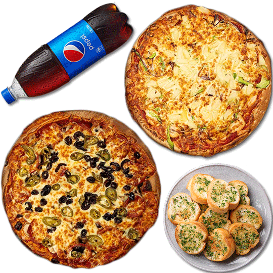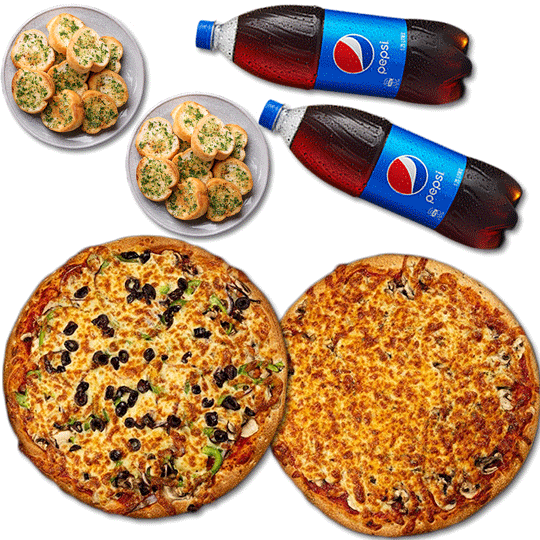 Most Popular$40.90Family2 Large Pizzas, 1 Garlic Bread, 1.25L Drink