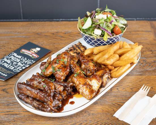 Slow-cooked in a choice of Rib Sauce or Spicy Sauce and finished on our flamin’ hot chargrill!BBQ Ribs Option