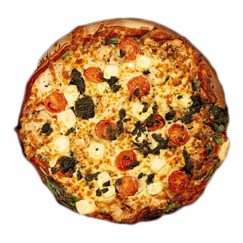 Chicken, ham, mushroom, salami, onion, capsicum, bacon + pineapple