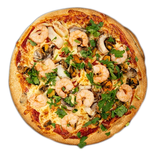 Ham, onion, mushroom, capsicum, salami, prawns, pineapple, olives and bacon.