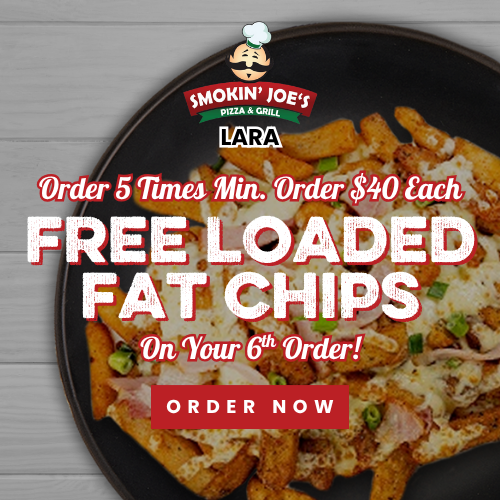 Joe’s Favourite$14.90Loaded Fat ChipsFat chips, bacon, cheese,sour cream + spring onionSpicy Loaded Chips$14.90Fat chips, chicken, cheese, garlic sauce + spicy sauce