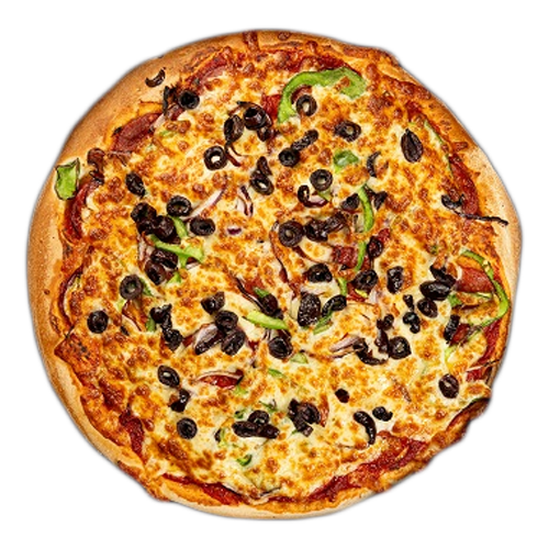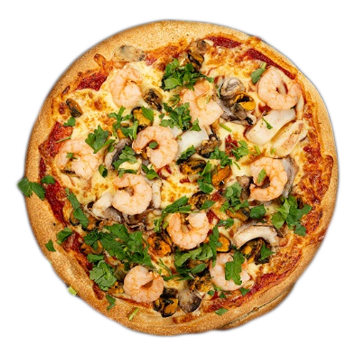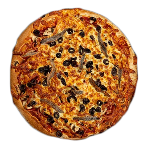 Ham, mushroom, onion, salami, capsicum, pineapple, prawns, bacon + olives