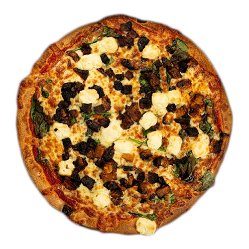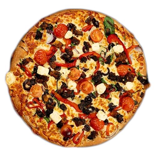 Mushroom, onion, capsicum, sweet corn, cherry tomato, jalapeno + olives