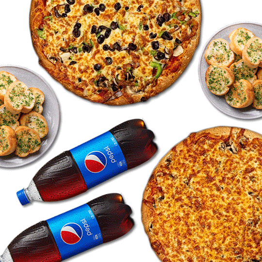 Family Feast$37.902 Large Pizzas, 1 Garlic Bread, 1.25lt Drink