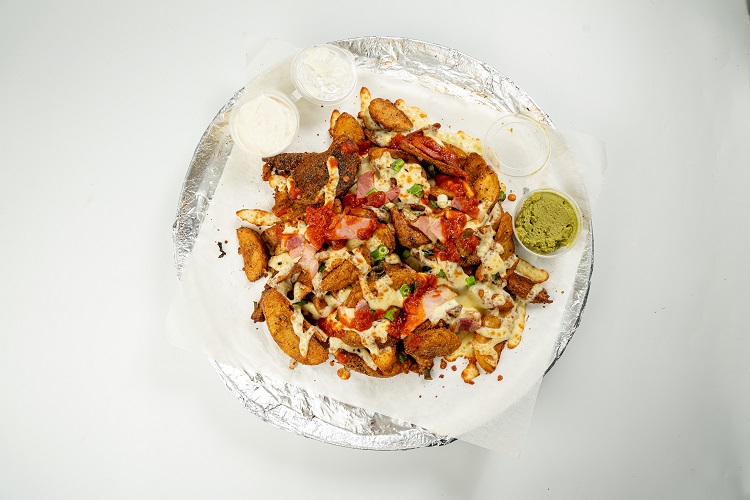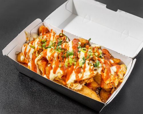 Spicy Loaded Chips$16.90fat chips, chicken, cheese, garlic sauce + spicy sauce