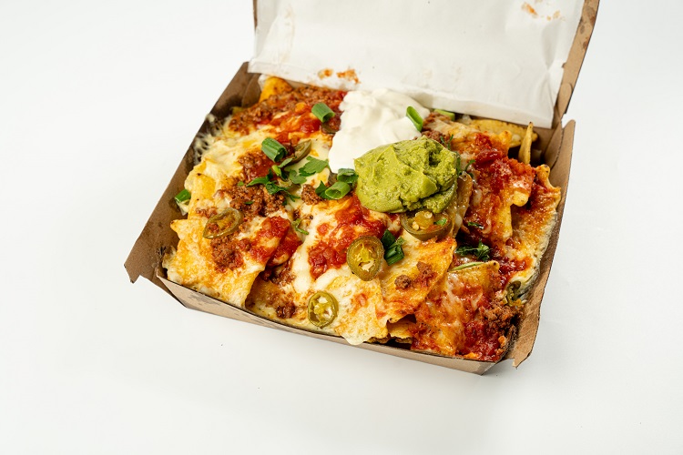 corn chips, cheese, salsa, jalapeños, bolognese sauce, sour cream, guacamole + spring onionChoose one