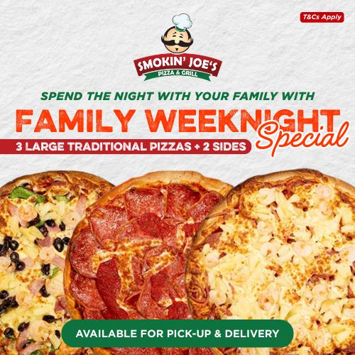 Family Bundle$54.903 Large Traditional Pizzas + 2 sidesAvailable days: Monday, Tuesday, Wednesday