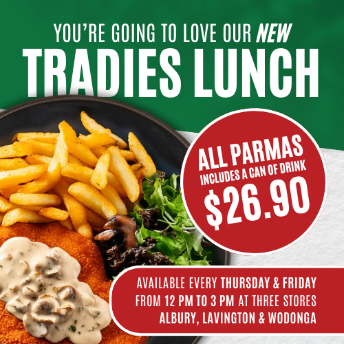 Tradies Lunch$26.90Unavailable. Please order between 12:00 PM and 03:00 PM